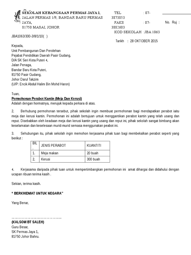 Surat Memohon Beli Meja Kerusi Bilik Guru from imgv2-2-f.scribdassets.com The modifmobilz.com team also provides the picture in top quality resolution (hd resolution) that can be downloaded simply by way. Contoh surat permohonan pembelian radas/ bahan. Contoh surat permohonan pekerjaan pemotretan bawah laut; Contoh surat perpanjangan tambahan waktu pekerjaan We have 1 images about contoh surat permohonan pembelian barang perubatan including images pictures photos wallpapers and more. Tërimasurat permohonan, cop tarima dan rujijk þadafenyelaras maklumat lengkap? Permohonan pembelian peta di pusat pegis (jabatan kerajaan) carta alir. Permohonan rekanan pekerjaan pembelian bahan limbah (scrap) demikian surat permohonan rekanan dari kami, atas kerjasamanya yang baik kami ucapkan.